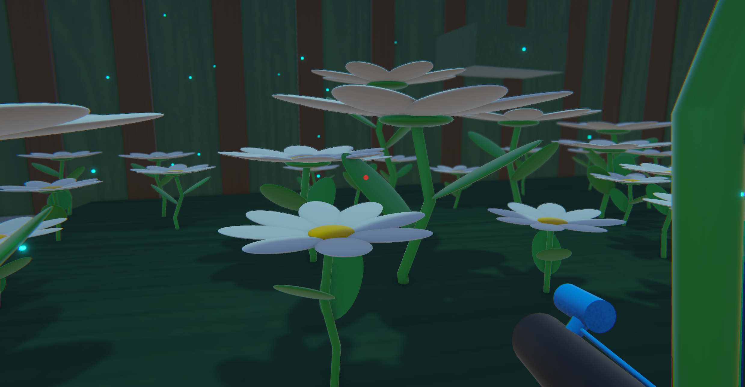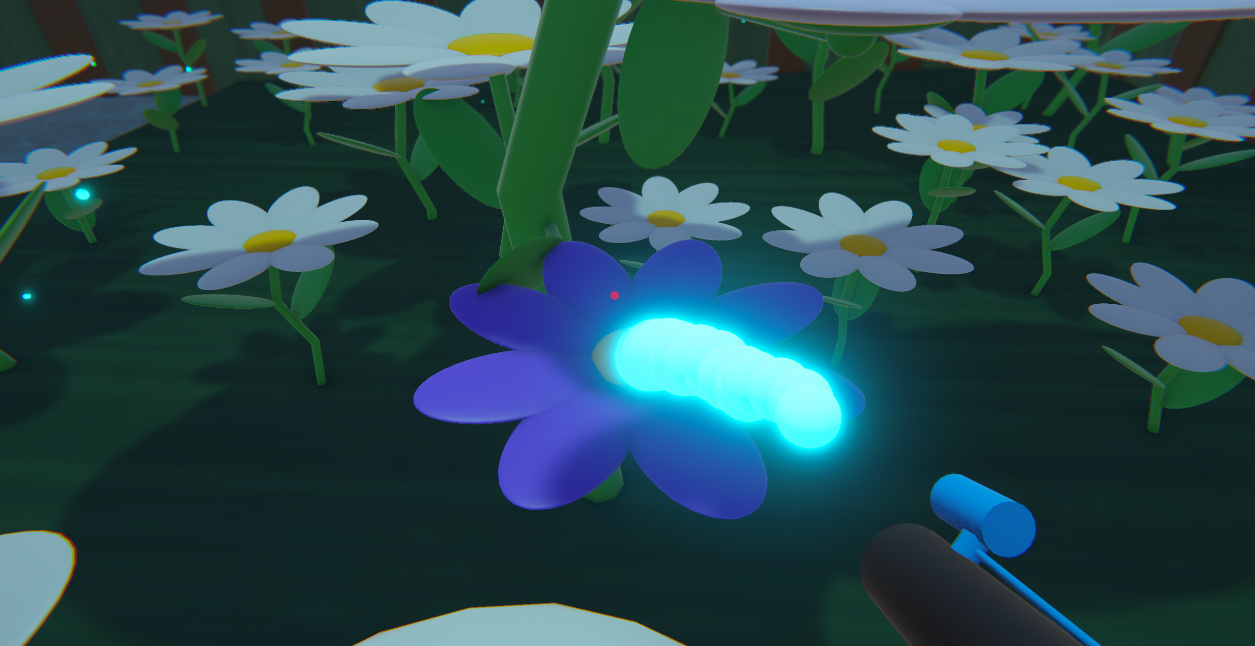Bloomie is a short 3D first person game where you shoot seeds that blooms into flowers. You also have a water gun which makes the flowers grow bigger. You can shoot the seeds on most surfaces and the flowers will grow out of them so that you can jump on them! The objective is to reach the glowing artifact on the biggest flower. I didn't have enough time to do more, but hope it's enjoyable nonetheless!